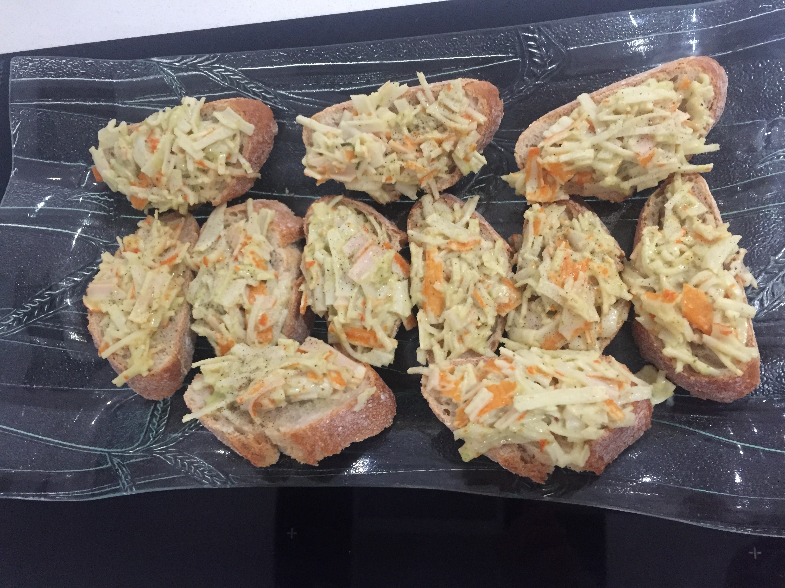 TOSTA DE PALITOS DE CANGREJO Y QUESO GRATINADA