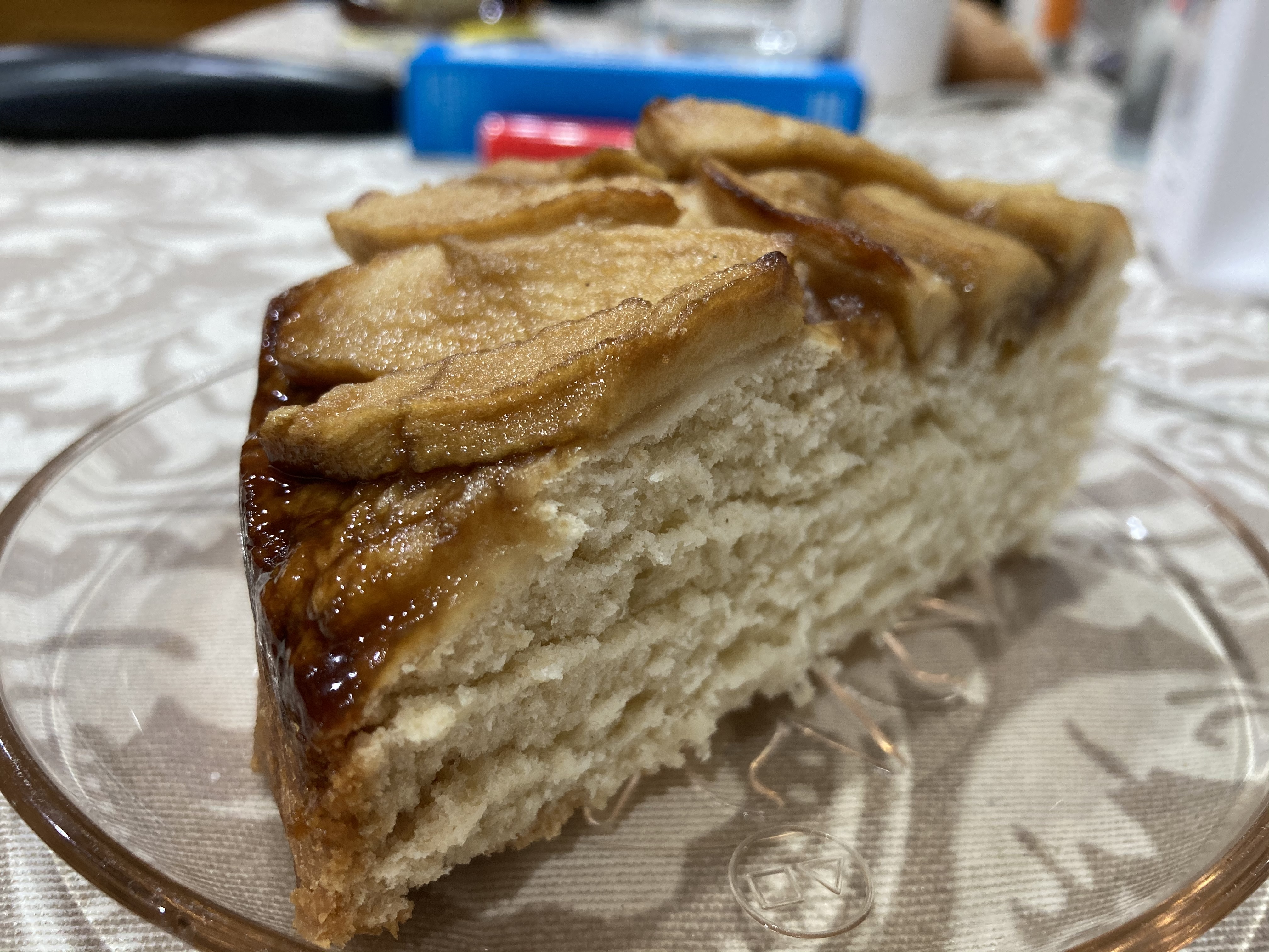 Ponga la masa en el molde y, con las yemas de los dedos, estírela hasta cubrir toda la superficie. Coloque los gajos de manzana hundiéndolos parcialmente en la masa, espolvoree con el azúcar de caña y distribuya trocitos de mantequilla por encima.