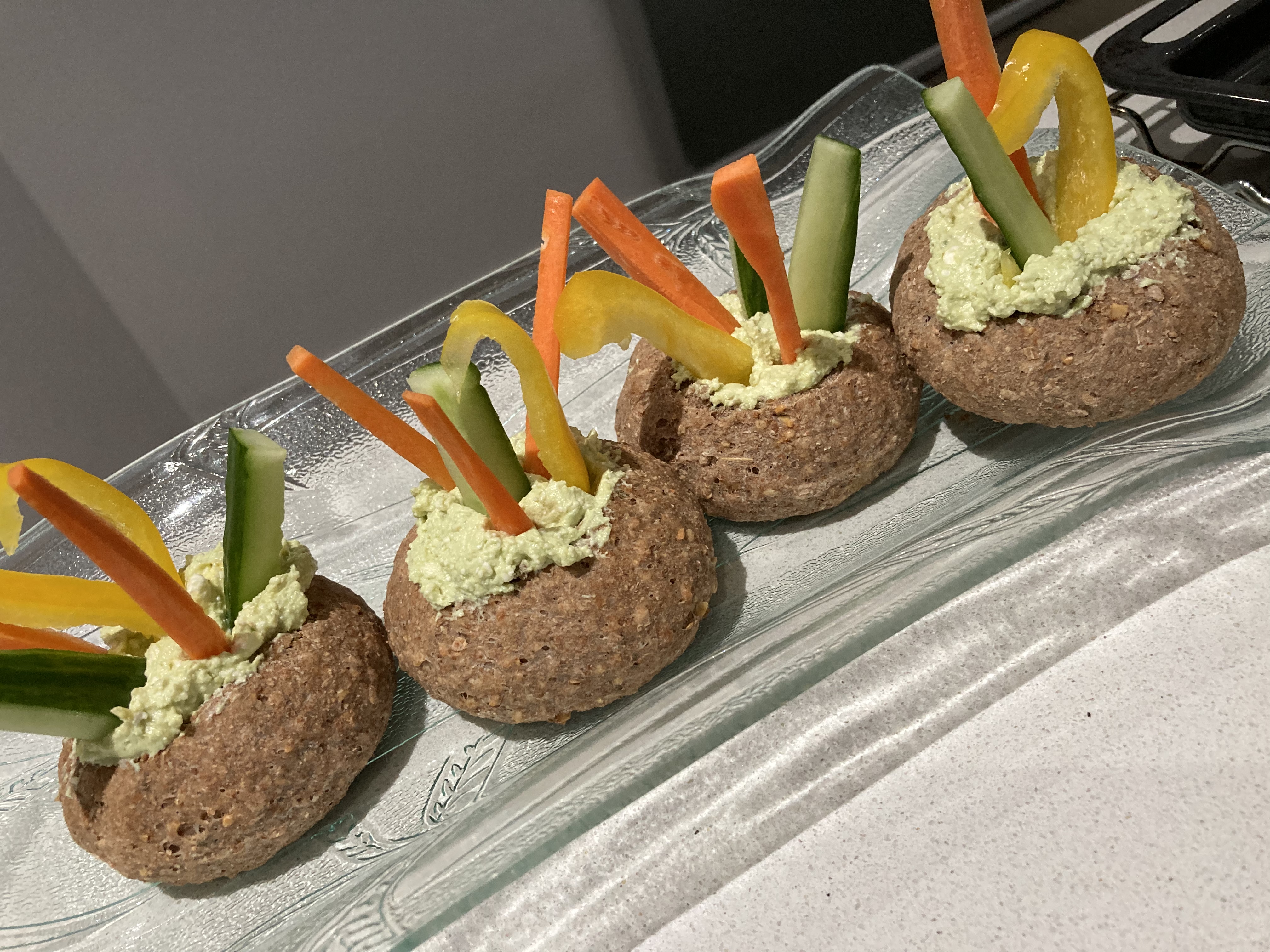 PANECILLOS INTEGRALES CON DIP DE QUESO Y CRUDITES