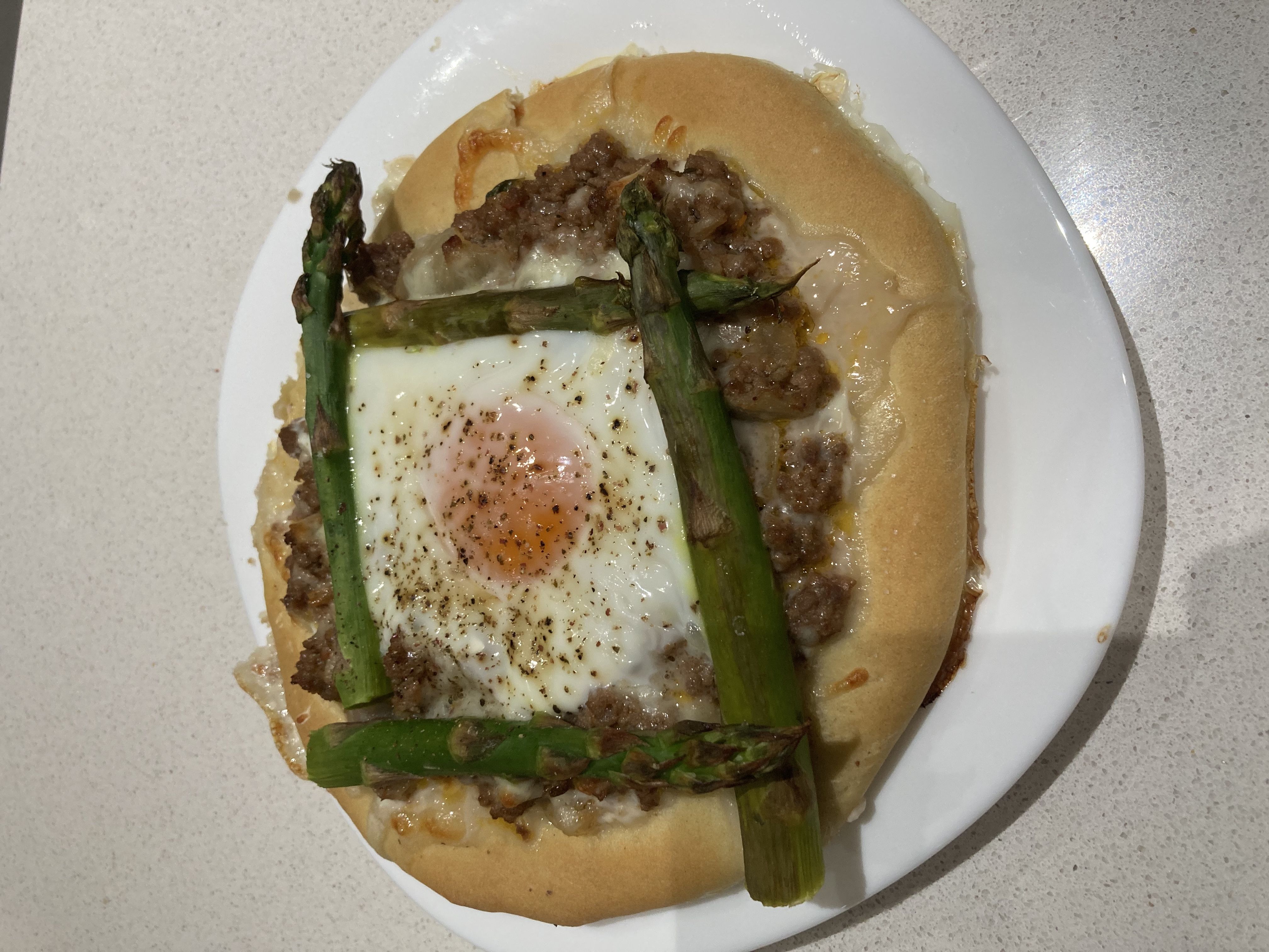 PIZZETAS DE CARNE CON ESPÁRRAGOS Y HUEVO