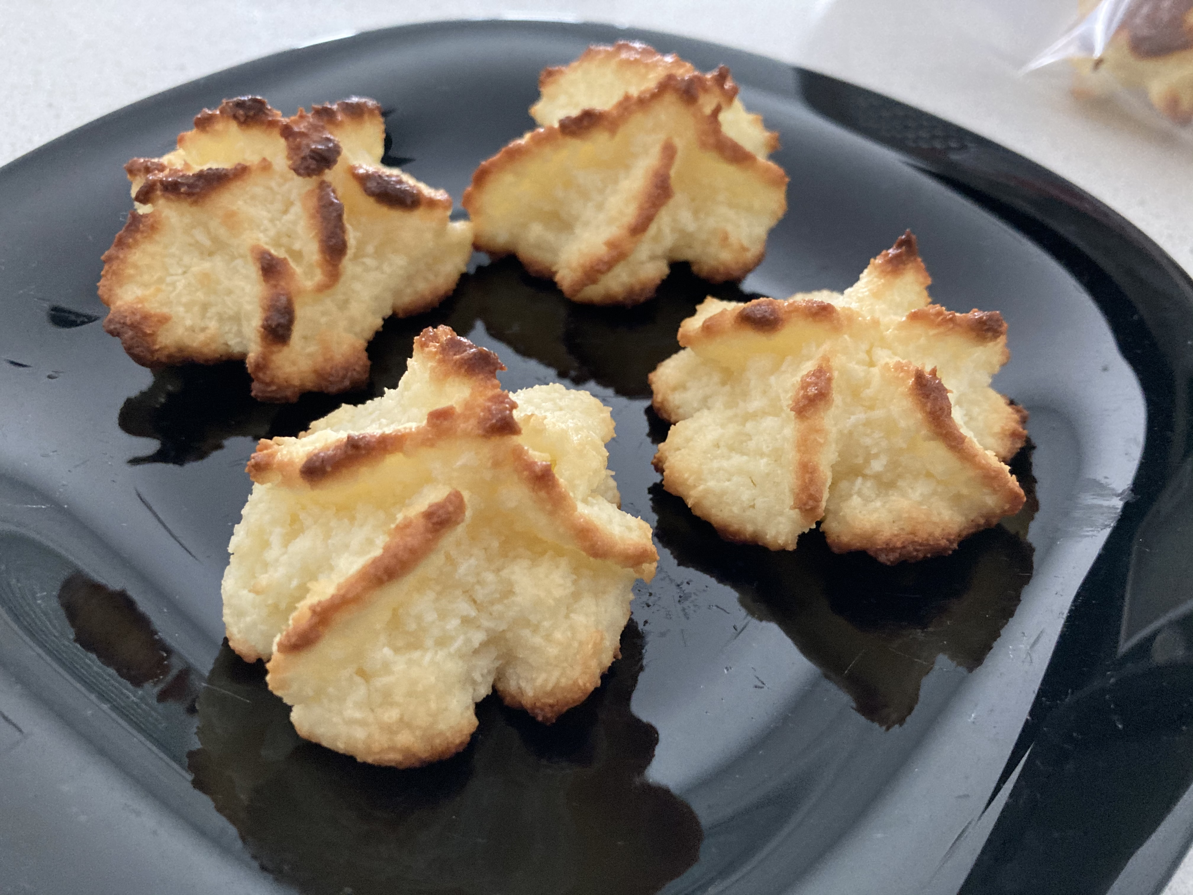 Coloque el vaso en la máquina e incorpore 100 g de azúcar, 1 huevo, la miel y el coco. Mezcle 10 seg/vel 4. Vierta en una manga pastelera con boquilla rizada y forme montoncitos en la bandeja preparada, de aprox. 4 cm de alto.