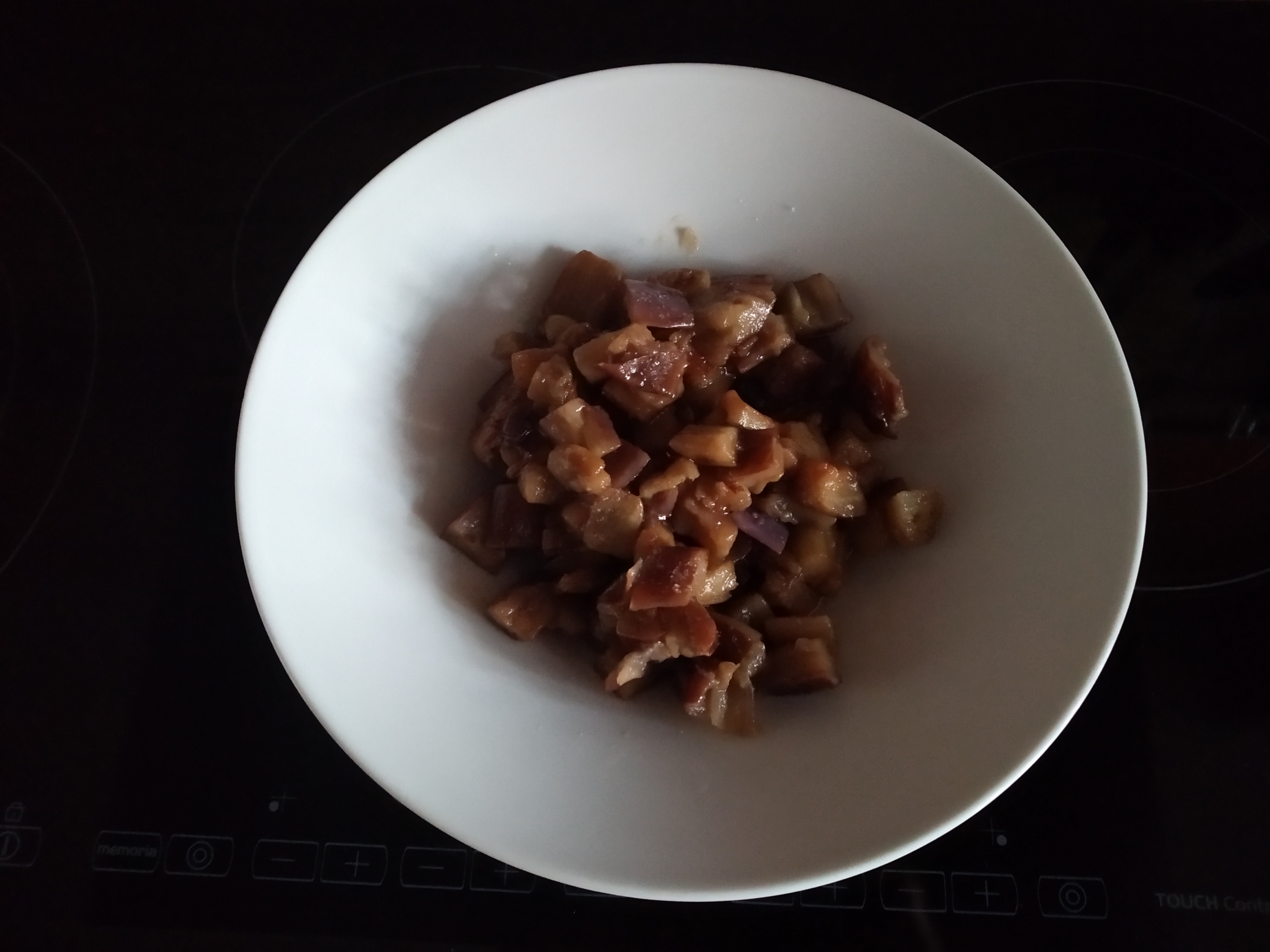 200 - 250 g ó 400 g de berenjena con piel en dados de 2 cm