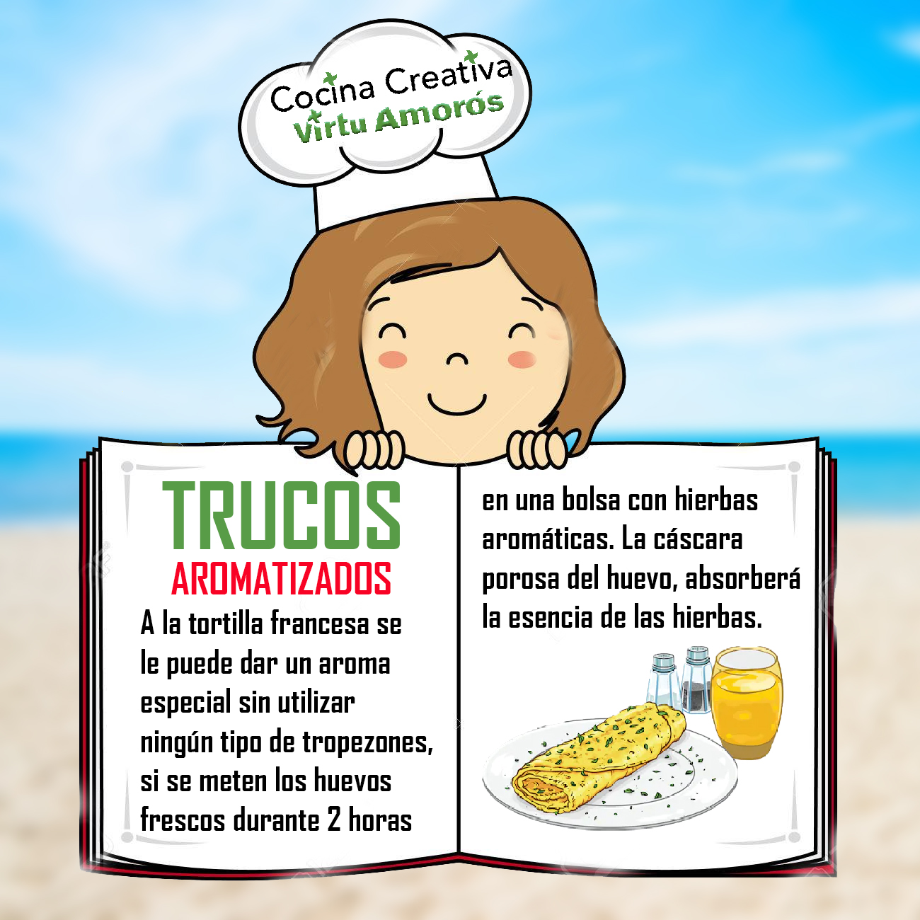 En Cocina Creativa Virtu Amoros, os vamos a explicar como darle un toque y un aroma especial a nuestra tortilla francesa.